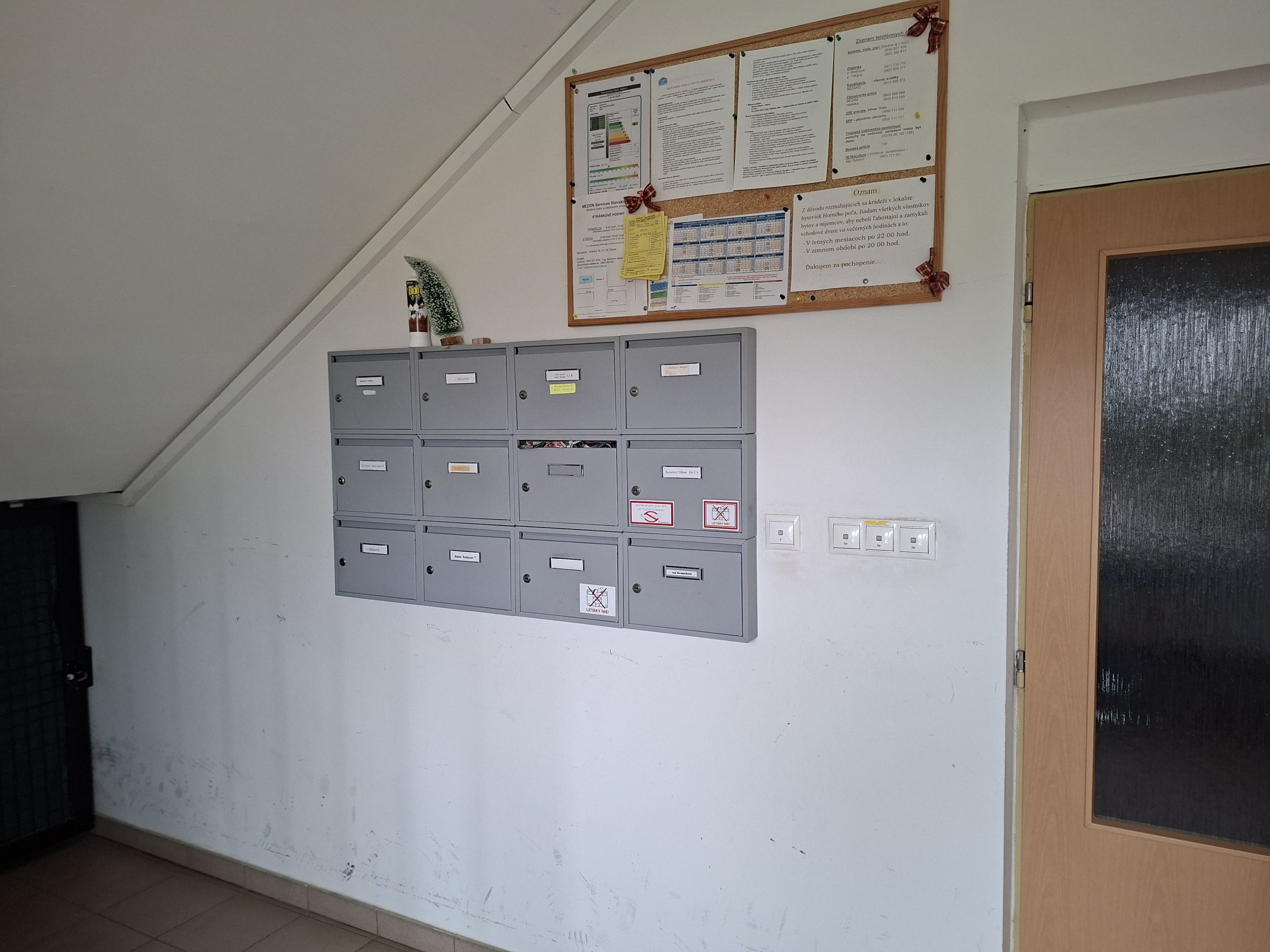• 1 vchod, 4 nadzemné podlažia a 3 byty na poschodí.