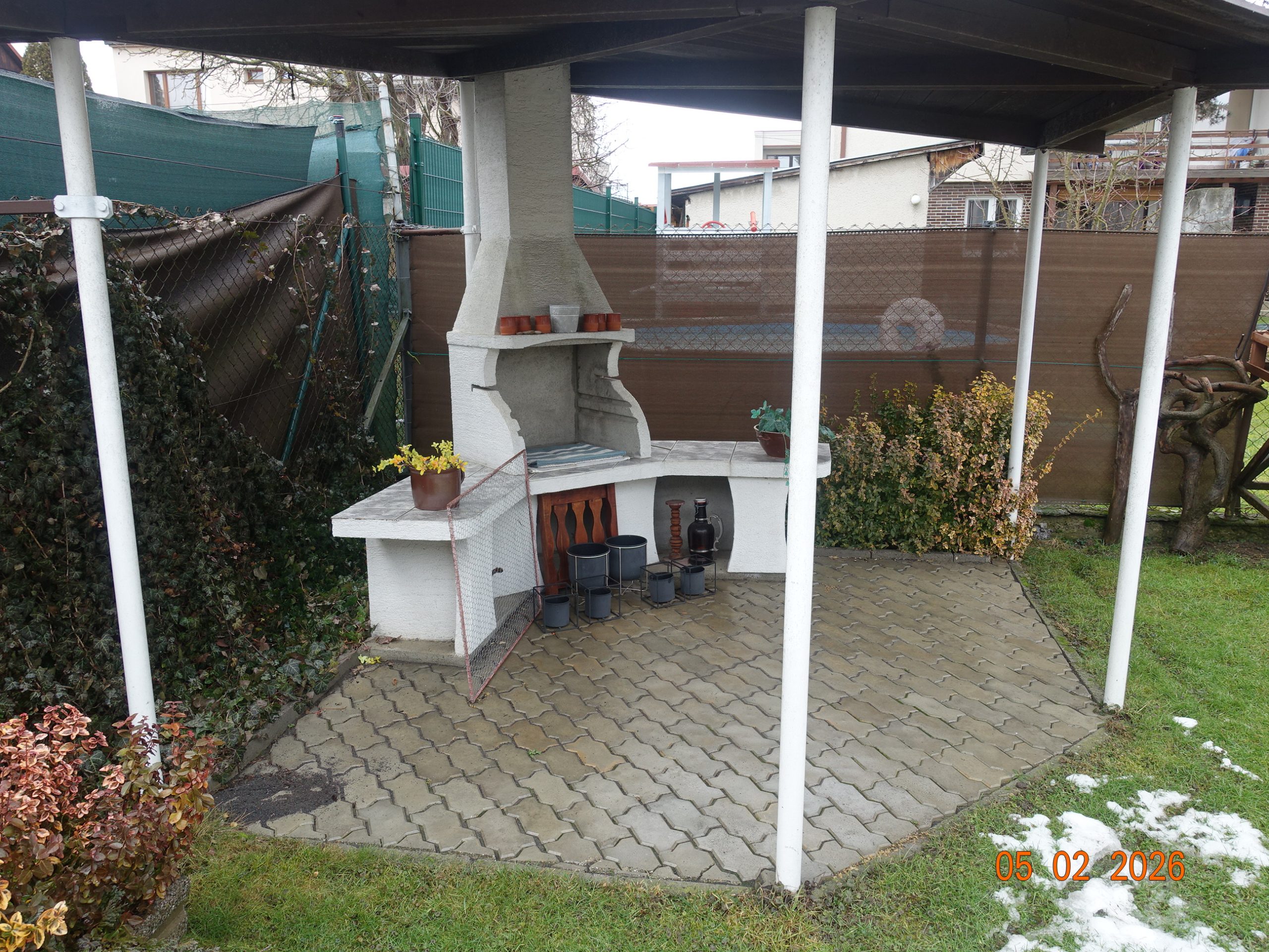 Ku domu prislúcha ešte jedna samostatne stojaca garáž, dreváreň, altánok a skleník.